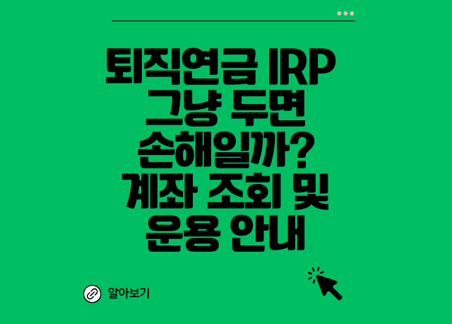 📊 IRP 계좌, 그냥 두면 왜 손해일까?